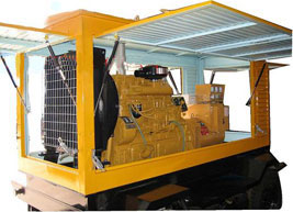 阿拉尔农场柴油发电机组/移动柴油发电机组设计独具创新,机动性高、重心低、制动安全、制造精良、外形美观。 阿拉尔农场拖车车架采用槽梁焊接成框架结构,节点选择合理、强度高、刚性好;同时装有钢板弹簧悬架结构;拖车采用高度可调节插销式牵引架,适用于各种高度牵引车;采用圆形钢管焊接直通式车轴,结构紧凑,安全可靠;车架四角设有机械式支撑装置,配备惯性行车制动、驻车制动和脱离应急制动,确保机组在各种状况下的安全;车架前端设有支撑轮,具备承受机组垂直载荷的功能的同时还具备导向功能;整车配备转向和刹车指示灯,同时装有尾灯标准插头